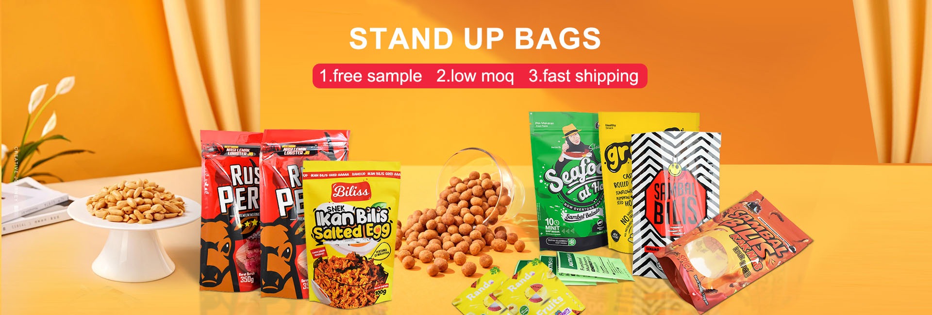 Productos principales:Bolsa de fondo plano, bolsa de boxeo de pie con cremallera, bolsa de boquilla de plástico, bolsa de Mylar, bolsa de papel Kraft